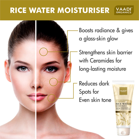 Rice Water Moisturizer with Niacinamide & Ceramides - B3+ | Oil-Control| Matte & Non-Greasy Hydration| Glass Skin Look (60 ml)