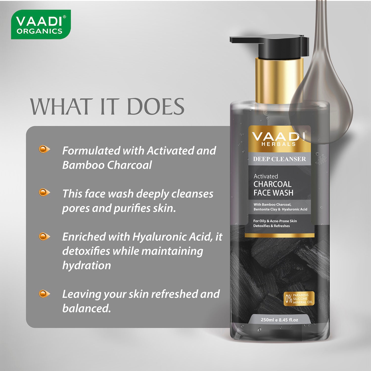 Activated Charcoal Face Wash with Tea Tree Oil, Bentonite Clay & Glycolic Acid| For Oily & Acne-Prone Skin| Detoxifies & Refreshes| Deep Purify| No Parabens, Mineral, Silicone| Face Wash for Women & Men ( 250 ml )