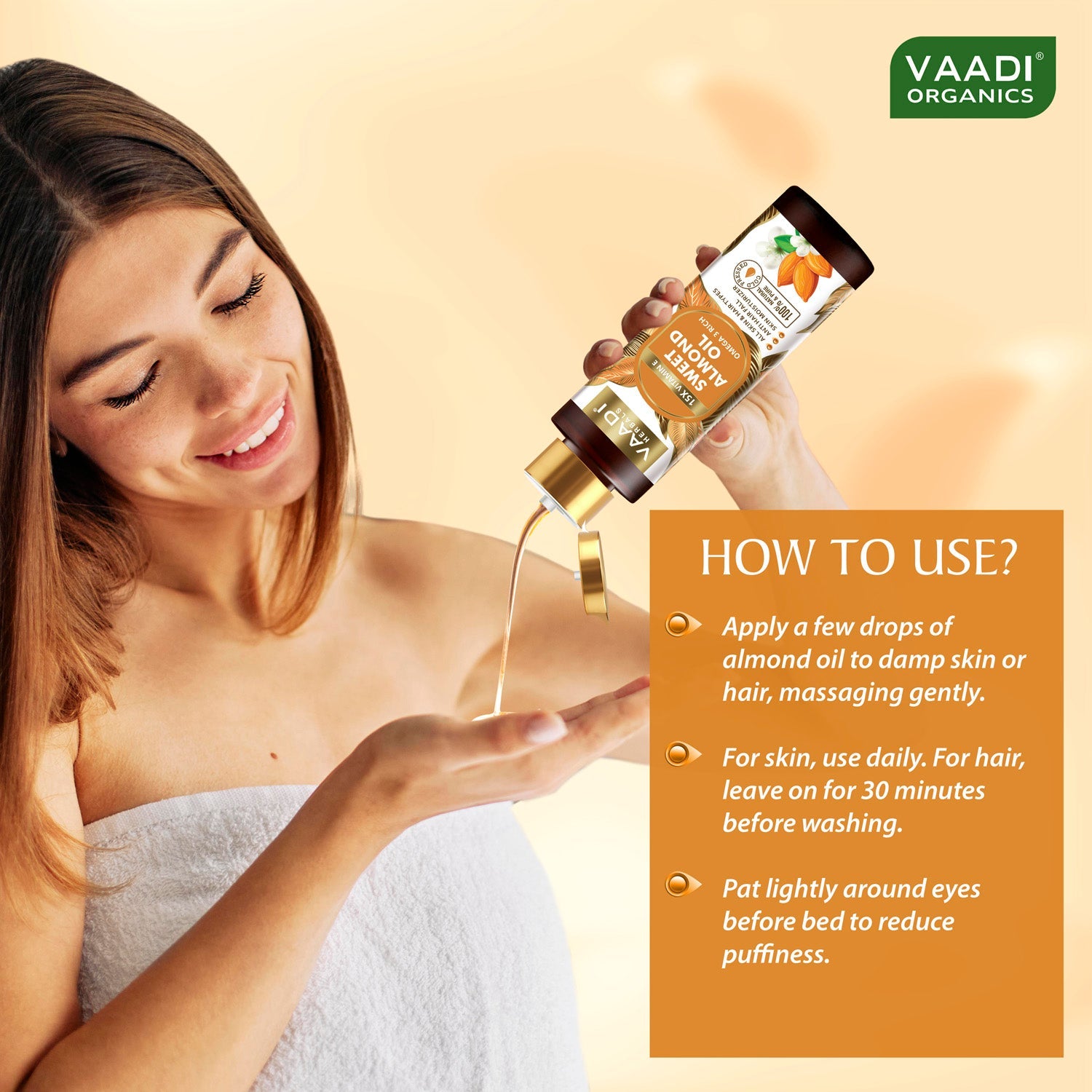 Cold-Pressed Sweet Almond Oil with Vitamin E - Anti Hair Fall - Removes Dark Circles- Skin Moisturizer-Promotes Hair Growth (120 ml / 4.05 oz)