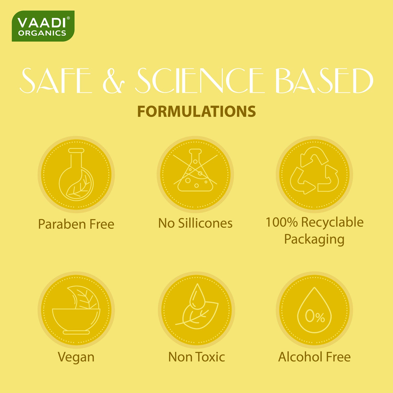 A complete hair and scalp tonic, this complex disinfects the scalp, treats AND prevents dandruff, while nourishing the hair. Lemon’s astringency further tightens the hair follicles, strengthening the roots and preventing hair-fall. And the tea tree extract, in this formulation, moisturizes dry hair, making it shinier and softer.