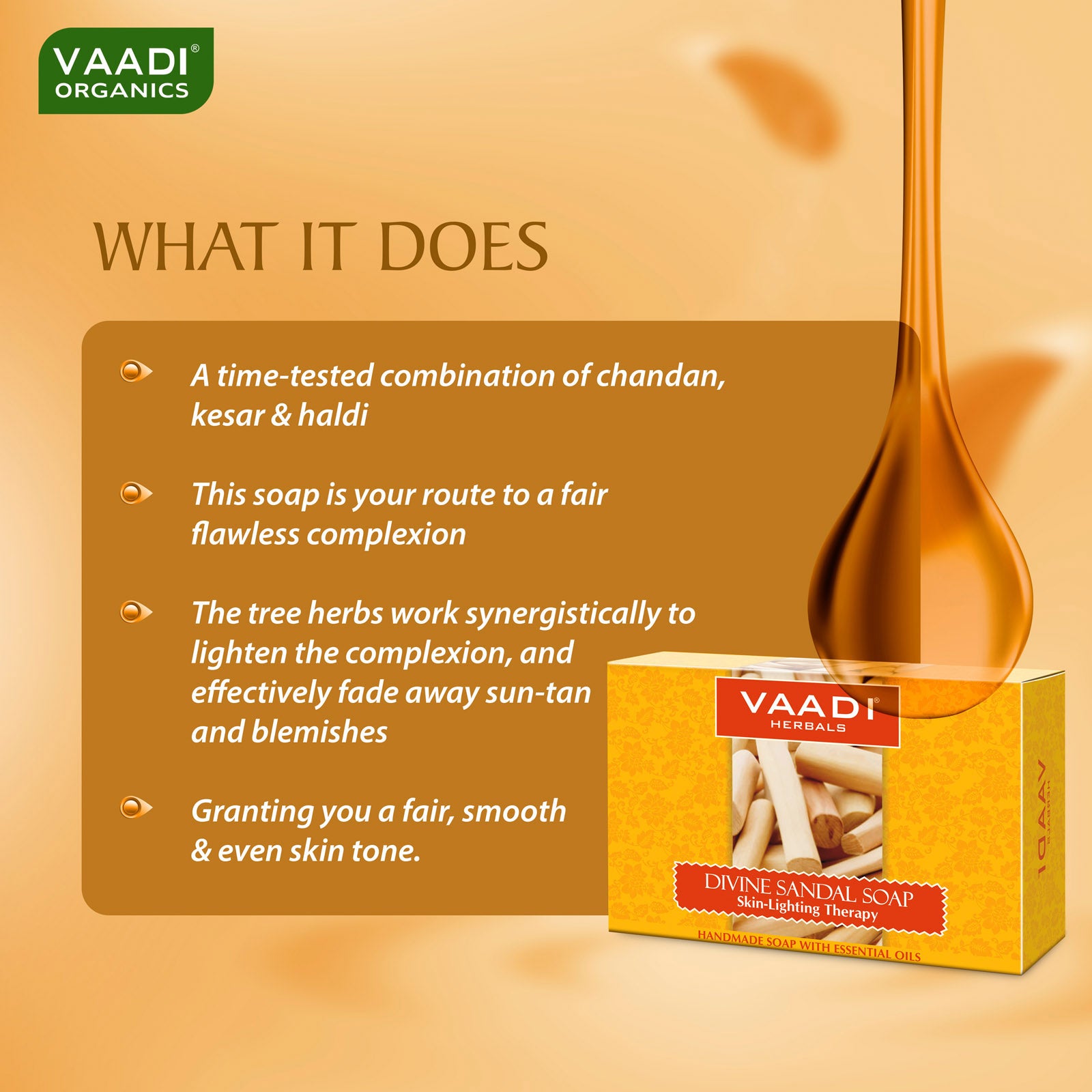 Divine Sandal Soap with Saffron & Turmeric - Skin Lightening Therapy - Lightens Tan & Blemishes (12 x 75 gms / 2.7 oz)