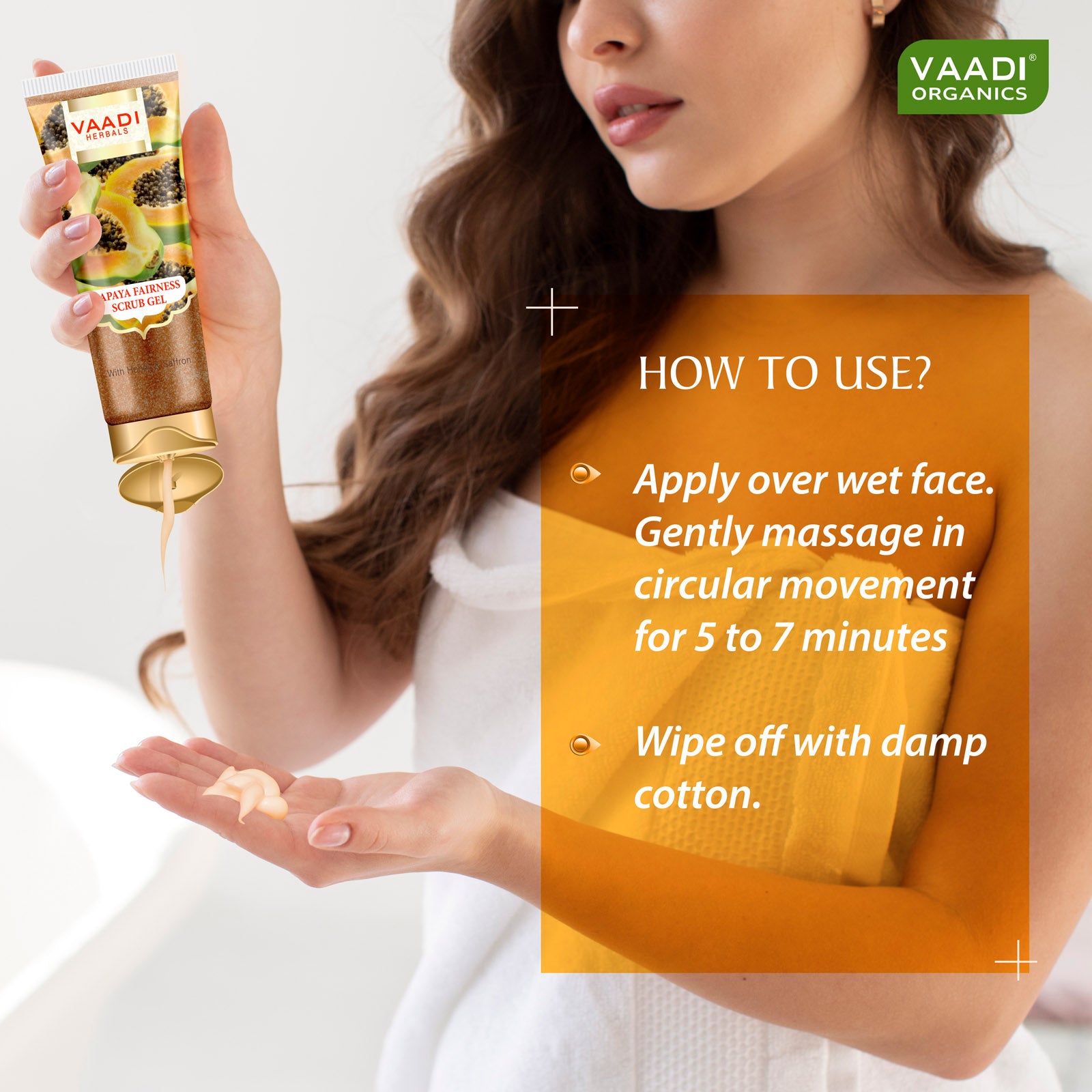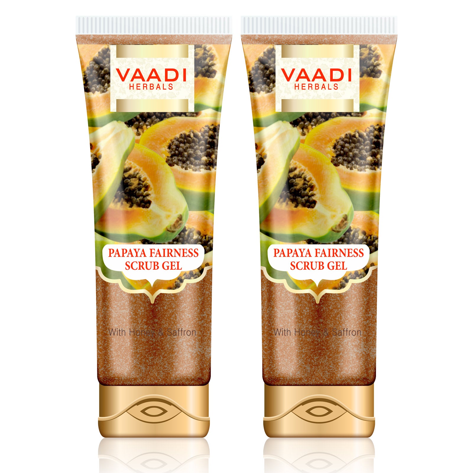 Papaya Fairness Scrub Gel with Honey & Saffron - Lightens Tan - Smoothens Skin Texture & Makes Skin Flawless (2 x 110 gms / 4 oz)