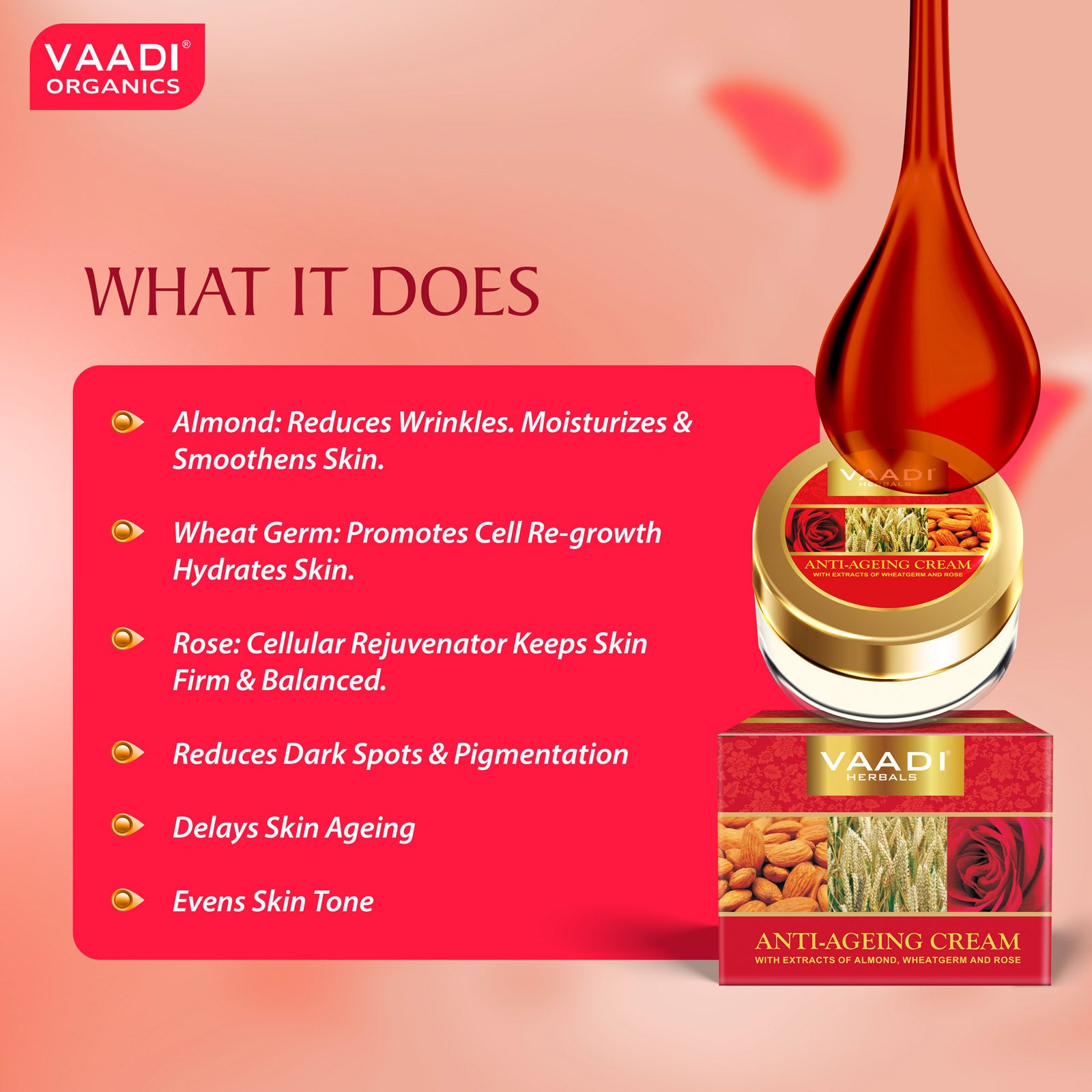 Anti Ageing Cream with Almond, Wheatgerm - Boosts Collagen & Delays Wrinkles Keeps Skin Soft & Youthful (3 x 30 gms /1.1 oz)