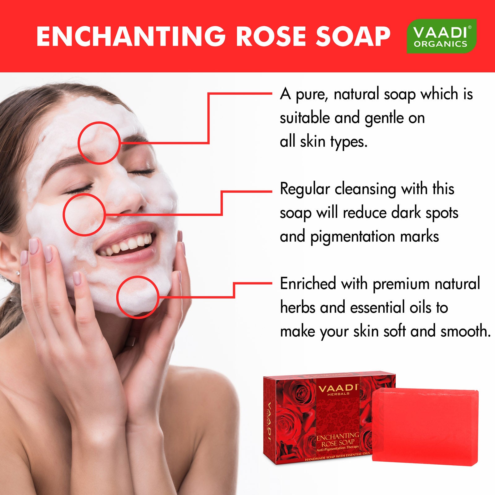 Enchanting Rose Soap with Mulberry Extract - Anti Pigmentation Therapy Lightens Dark Spots & Patches (3 x 75 gms/2.7 oz)