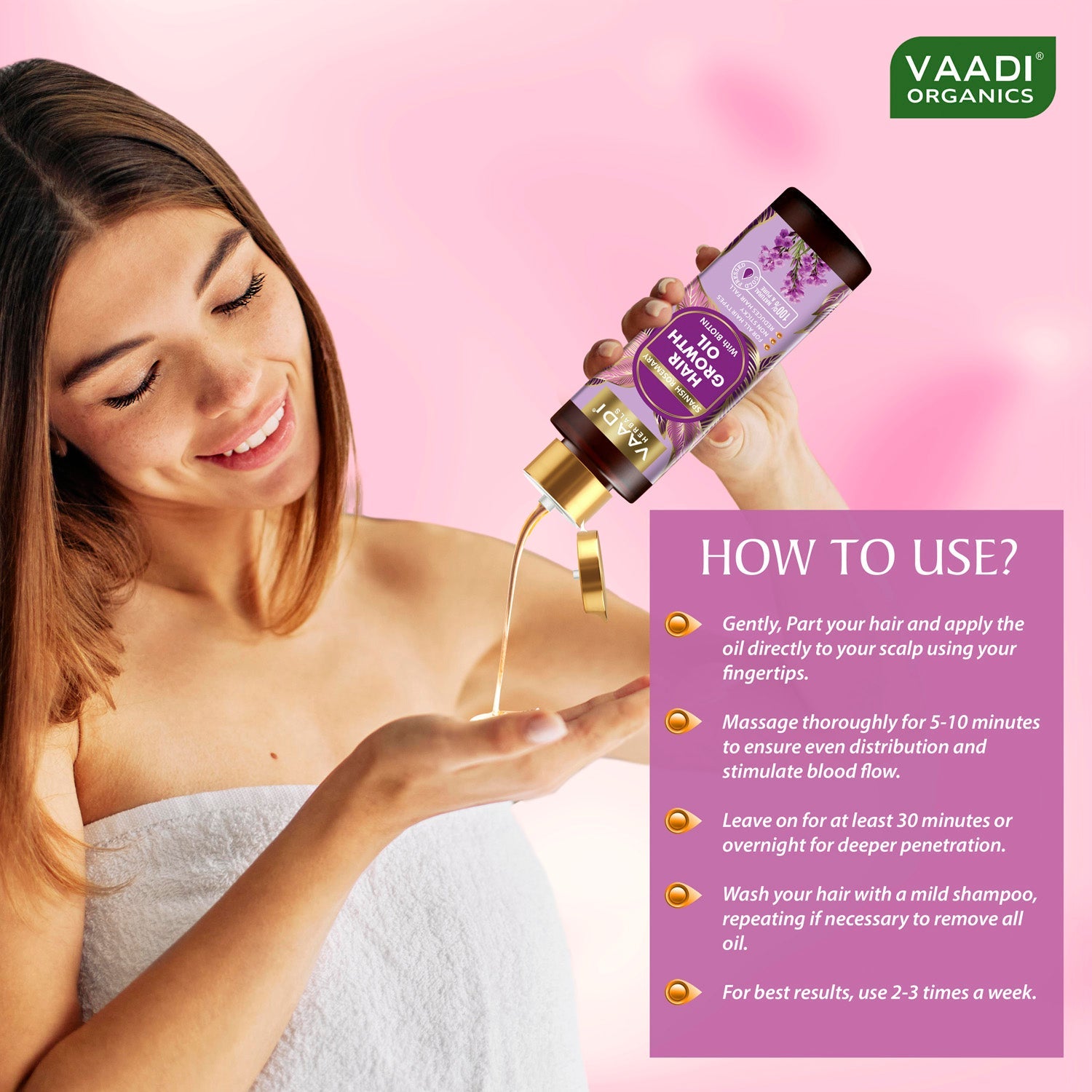 Gently, Part your hair and apply the oil directly to your scalp using your fingertips. Massage thoroughly for 5-10 minutes to ensure even distribution and stimulate blood flow. Leave on for at least 30 minutes or overnight for deeper penetration. Wash your hair with a mild shampoo, repeating if necessary to remove all oil. For best results, use 2-3 times a week.
