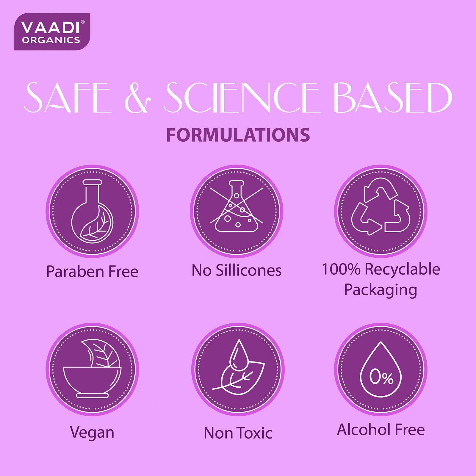 Vaadi Herbals 10% Niacinamide along with 1% Zinc is proven to effectively reduce appearance of dark spots, blemishes and pigmentation in just 3 weeks. The presence of zinc in this formulation balances the production of sebum in skin and reduces inflammation, leaving the skin texture smooth and nourished, with no sticky residue.